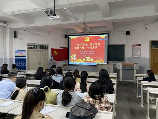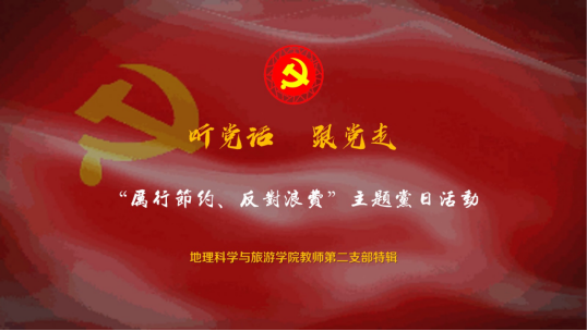 党总支的要求,2020年9月18—21日期间,地理科学与旅游学院教师第一党支部、第二党支部,本科生第一党支部、第二党支部,研究生第二党支部、第三党支部纷纷开展了“浪费可耻、节约光荣”专题学习及形式多样的主题党日活动。