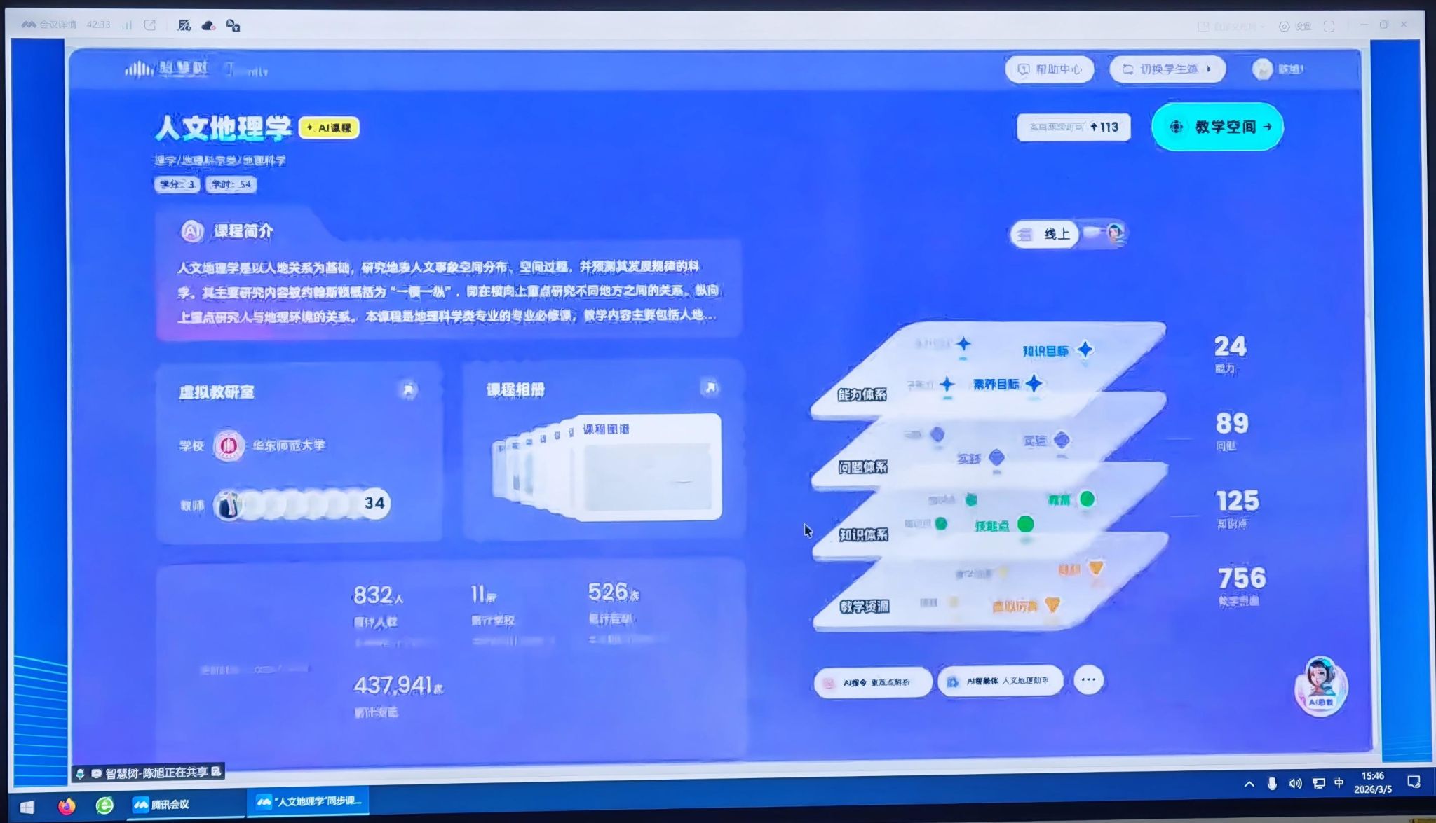 2026年3月6日,新疆师范大学与华东师范大学共建的人文地理学智慧课程,开启新一轮跨校混合式教学。依托人文地理学智慧课程建设和智慧树技术服务平台,本学期跨校教学由新疆师范大学、华东师范大学、云南师范大学、湖南文理西瓜看球