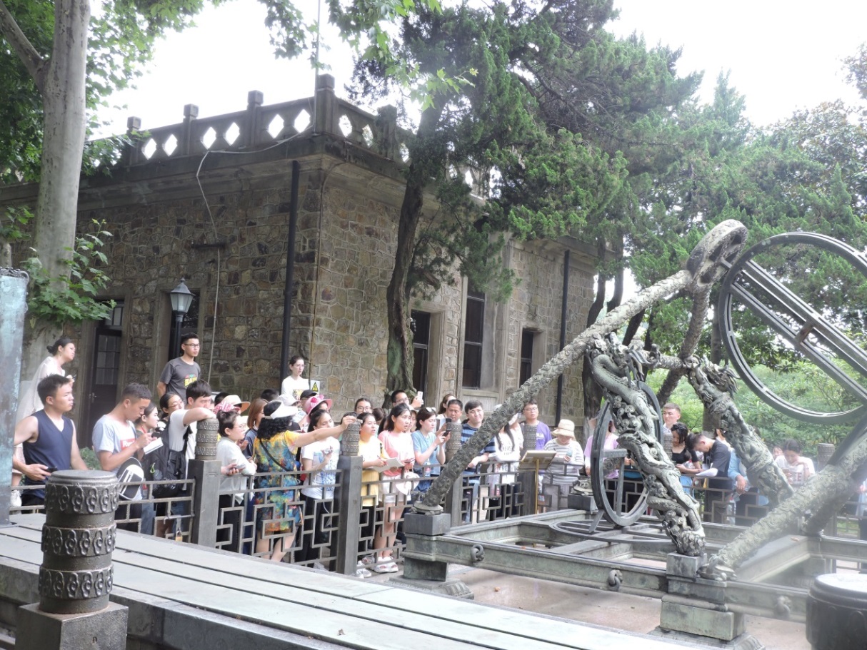 紫金山天文台,中国现代天文学的许多分支学科和天文台站大多从这里诞生、组建和拓展,这里汇聚了各个年代发明的天文仪器,古代的有浑仪、简仪、圭表、地平经纬仪和天球仪等。这些仪器透视出我国古代科学家的聪明智慧和在天文学上所取得的光辉成就,也为地科专业提供了现实的可触摸的素材,通过科普讲解于学习,同学们重温了地球概论中的天文知识,为深化厘清地球概论课程、推动中学研学旅行提供了可资借鉴的标本。