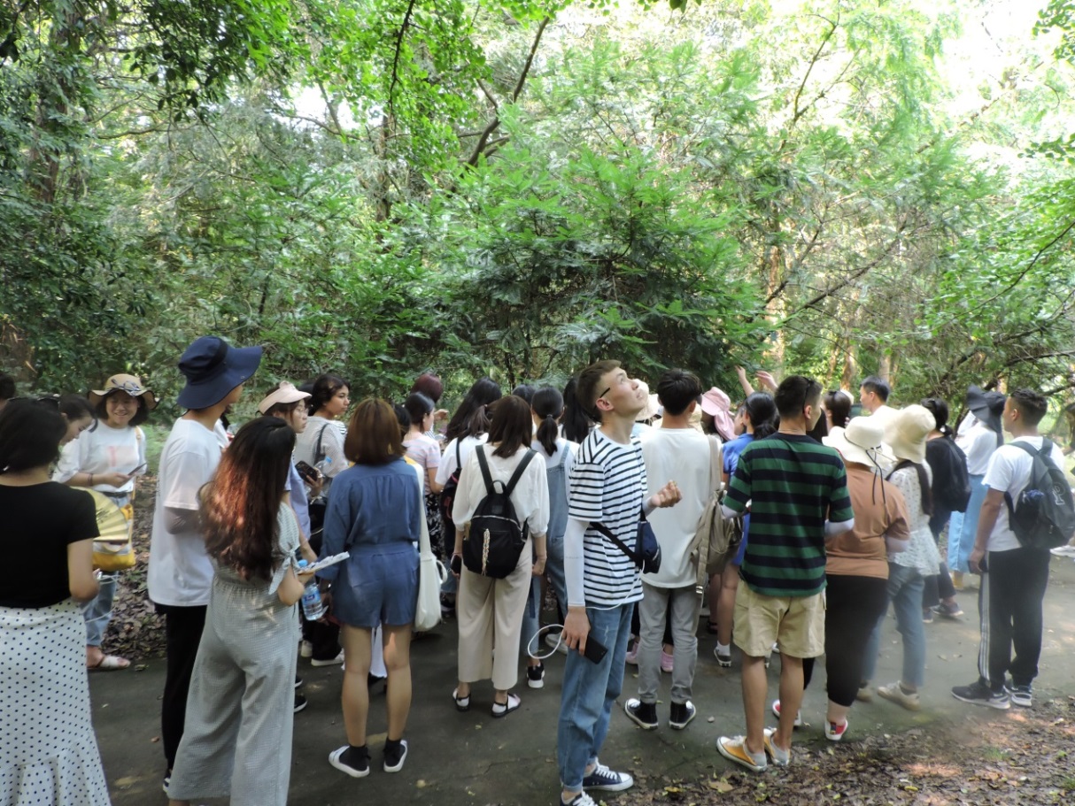 7月1日下午,同学们考察南京中山植物园,该植物园是中国中、北亚热带的植物研究中心,拥有专类园(区)10个,设有观赏植物中心、药用植物中心、经济植物中心等,其中分类系统园即植物分类系统园,包括亚热带华东地区可露地生长的种子植物300多种,隶属85科204属,依循Bessey分类系统,按照生态条件和园林布局种植, 是学生们了解植物分类和进化的活标本园,通过认真聆听专业老师的讲解和解答,同学们对亚热带植物类型有了基本的感知了解。同时增长了对地方性自然地理知识的兴趣,叶茂老师也进行了现场提问与答疑。