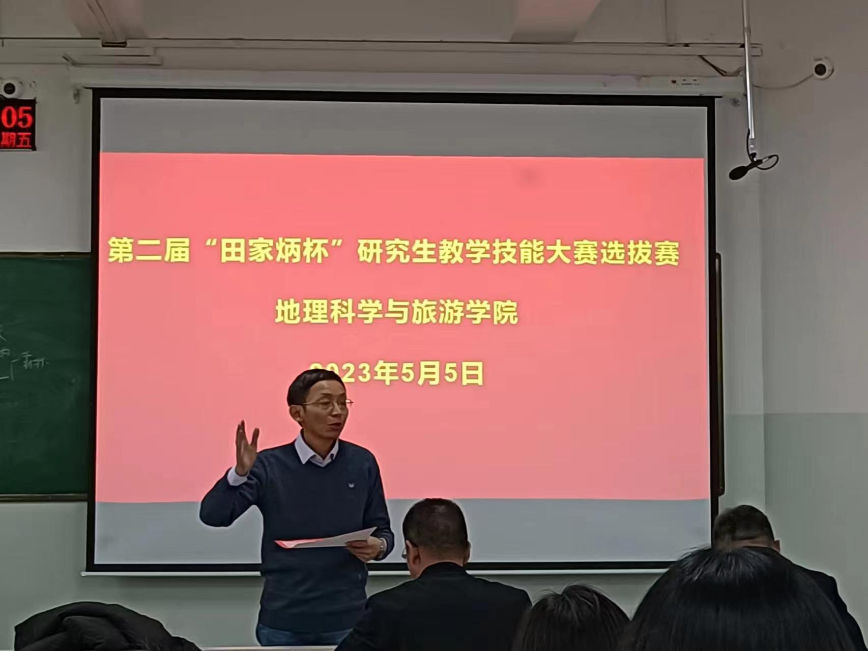 为进一步加强地理教育硕士专业学位研究生教育教学实践能力的培养、促进地理教育硕士的核心素养提升,第二届“田家炳杯”教育硕士研究生教学技能大赛选拔赛于2023年5月5日在我院成功举行。大赛选拔赛环节包括教学设计、课堂教学、现场答辩三个部分。本次大赛特邀新疆师范大学附属中学蓝毅高级教师担任评委主席,西瓜看球